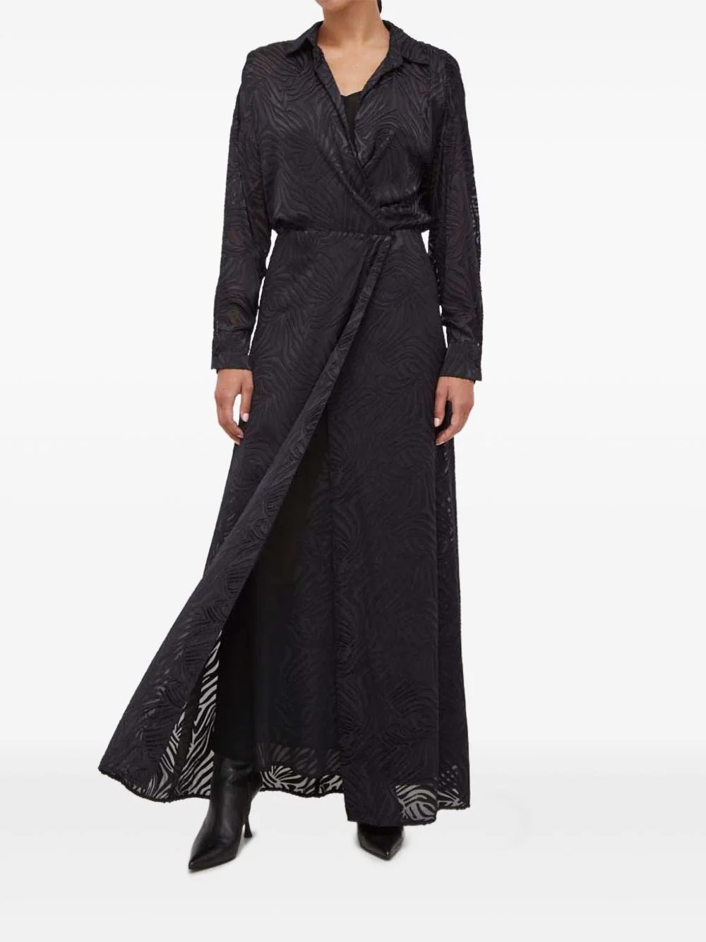 patterned wrap maxi dress Highlights - Black - Pattern - Wrap design - Long sleeves - Shirt collar - Buttoned cuffs Imported Composition Fabric 100% Washing instructions Read Manufacturer Guidelines