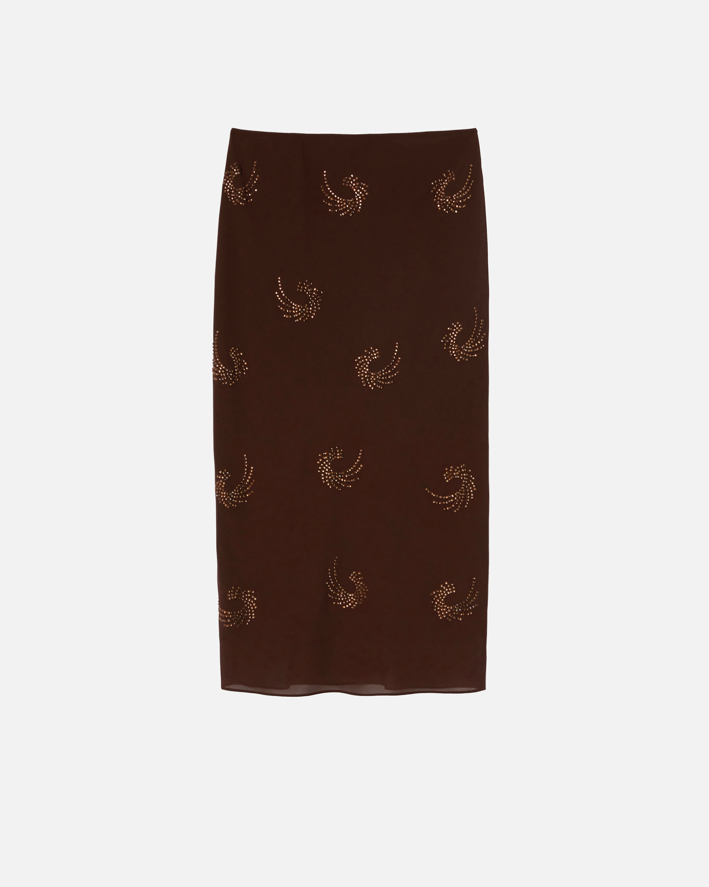 GEORGETTE SKIRT WITH RHINESTONE SWIRLS