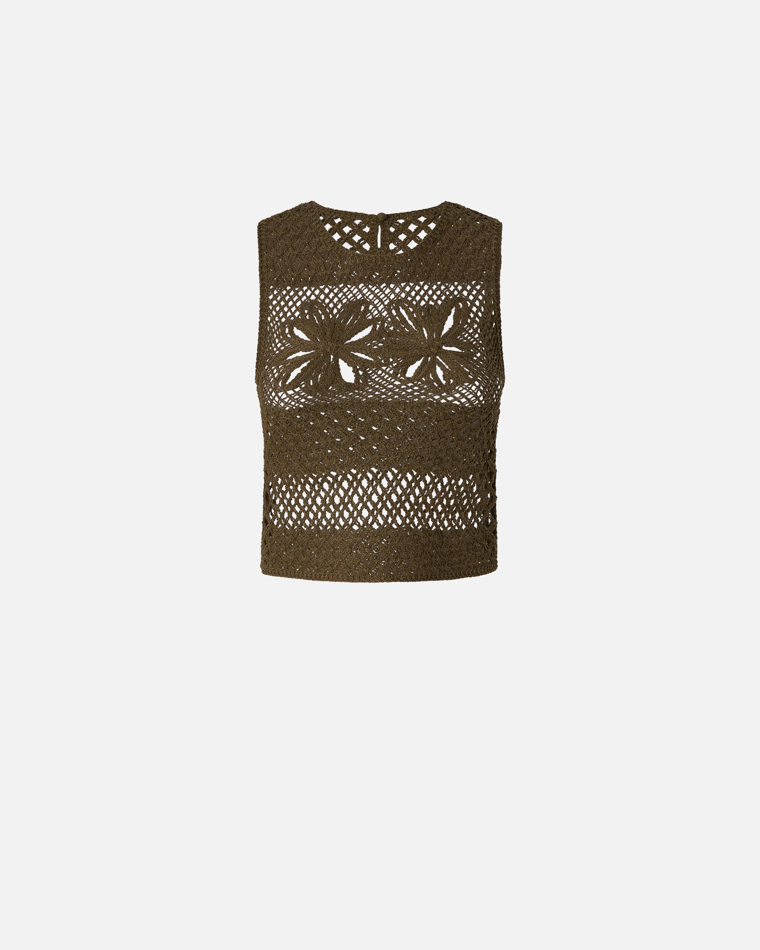 GONZANO TOP − 104733A2FFX26 Straight-cut sleeveless top made of patterned perforated crochet mesh yarn, where a diamond pattern alternates with a particular floral, feminine and summery design. The top with a transparent texture is completed by a round neckline closed with three small buttons on the back of the neck, and is ideal for completing even the most formal look with an original and sunny touch. COMPOSITION : VISCOSE 75% POLYAMMIDE 25% POLYAMIDE 25% - : POLYESTER 100%