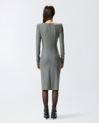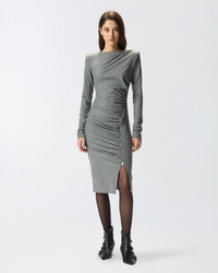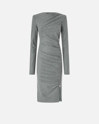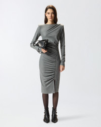 ALMUNDENA DRESS − 106126A2ZUI76 Slim-fitting long-sleeved midi dress in yarn-dyed wool-blend jersey flannel—a fabric that combines softness, elasticity and comfort to perfection—with structured shoulders and small button and keyhole opening at the back of the neck. While it has an understated aesthetic, this item is enhanced by striking details, including dynamic draping on the front and a side zip that allows you to adjust the opening of the slit. This dress is ideal for a creating an everyday outfit with a personal, feminine touch—one you can also wear to the office. COMPOSITION Outside Fabric: POLYESTER 66% WOOL 29% ELASTANE 5%