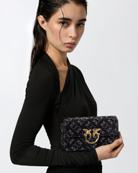 LOVE ONE POCKET C − 100061A20DZI1Y00001 Small elegant Love Bag, rectangular in shape, entirely studded with small two-tone rhinestones to form a special Love Birds Monogram pattern all over the surface. The matching thin metal chain shoulder strap can be removed, allowing you to carry it by hand or crossbody. The flap fastening is complemented by the iconic metal bird buckle, while the polycotton-lined interior includes credit card slots. Activate your PINKO bag: verify the authenticity of your product and access a personalised experience by scanning the Love Birds embroidery on the back of the bag with your smartphone! COMPOSITION Outside Fabric: Silica 100% SILICON DIOXIDE 100% - Leather: COWHIDE 100% BOVINE SKIN 100% - Accessory: Zinc 100% - Internal: POLYAMMIDE 50% POLYAMIDE 50% POLYCARBAMIDE 50% MEASUREMENTS - Height: 12 cm - Width: 5 cm - Length: 20 cm