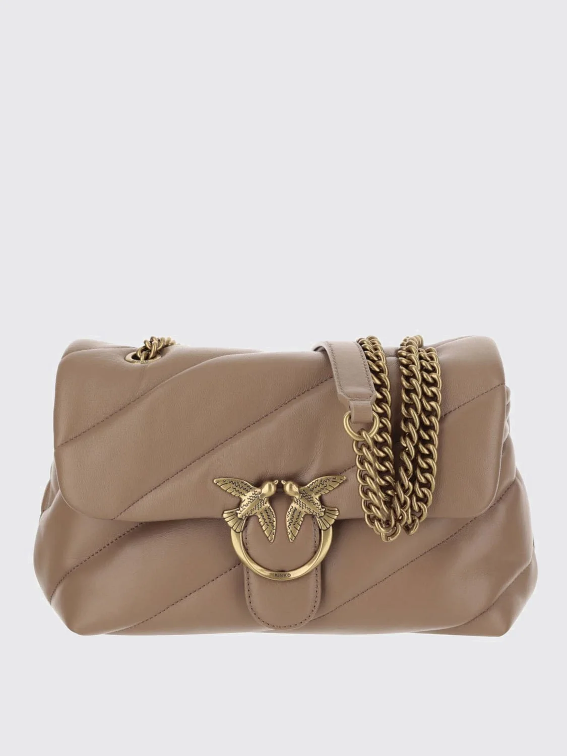 DESCRIPTION Editorial Notes Shoulder bag woman Pinko - Logo: Metallic, Love Birds - Model: Quilted, Shoulder - Closure: With button flap - Shape: Rectangular - Shoulder strap: With shoulder rest , Metal mesh, Sliding - Materials: Nappa leather - Pattern: All-over logo DETAILS AND CARE Composition PEL - Pelle: 100%HF - ACC - Accessorio: SIZE AND FIT Sizes Width : 26 cm Height: 17,5 cm Depth: 10,5 cm Designer code: 100038A0F2 D01Q Giglio Code: 425485 Designer: Pinko Collection: Pinko Woman Category: Bags Pinko