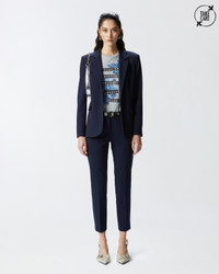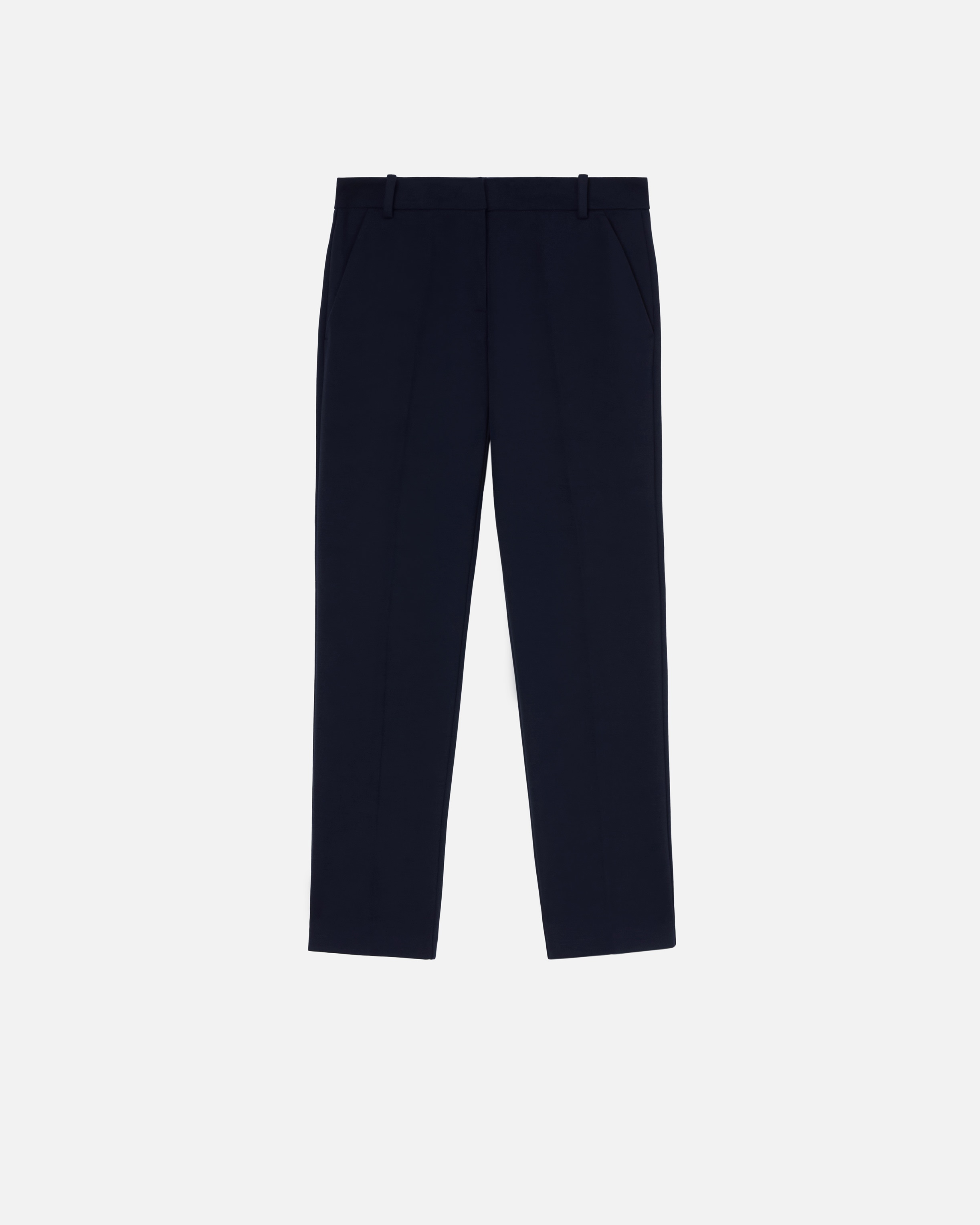 BELLO TROUSERS ā 100155A24DG02 Elegant cigarette-fit trousers in technical, full Milano-knit stretch viscose fabric. Regular waist with belt loops, slanted side pockets and welt pockets on the back. Straight, tapered legs with crease down the middle on the front and back. Zip fastening and accompanying waist button. The main fabric is made with 67% viscose from responsibly managed forests. COMPOSITION Outside Fabric: VISCOSE 67% POLYAMMIDE 28% POLYAMIDE 28% ELASTANE 5% - Lining: ACETATE 65% POLYESTER 35%