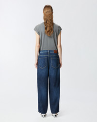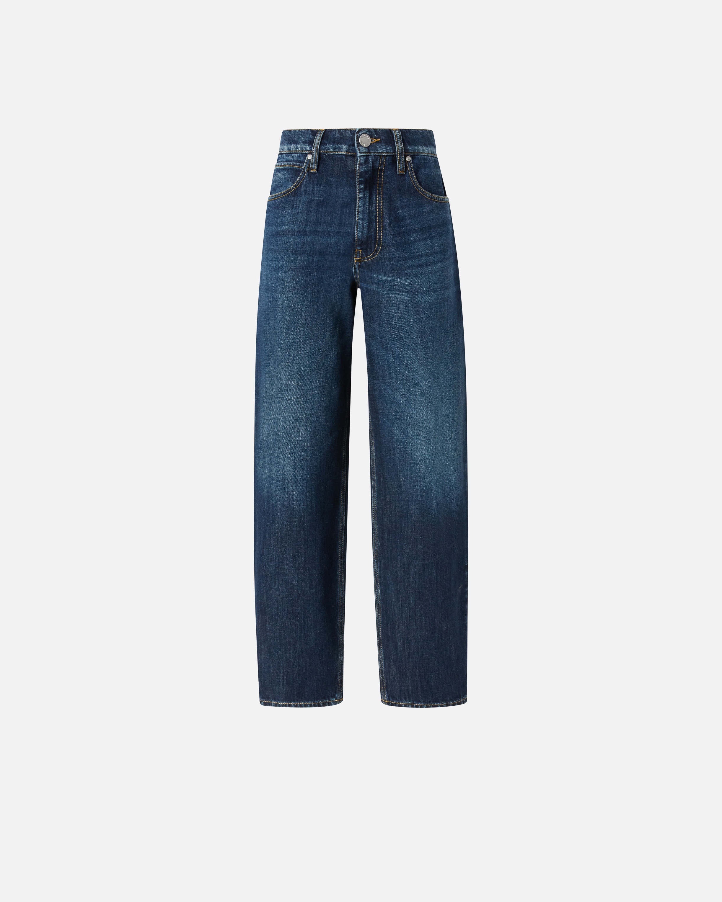 ESTELLE EGG ā 103857A2DSPJD Women's five-pocket jeans in ocean wash denim, which stands out for a medium wash with a particularly intense shade. High-waisted jeans are characterized by their egg-shaped line, where the leg is slightly wide and rounded on the hips and narrower at the bottom. Zip closure concealed by flap and metal tack button. COMPOSITION Outside Fabric: COTTON 100% - Lining: POLYESTER 65% COTTON 35%