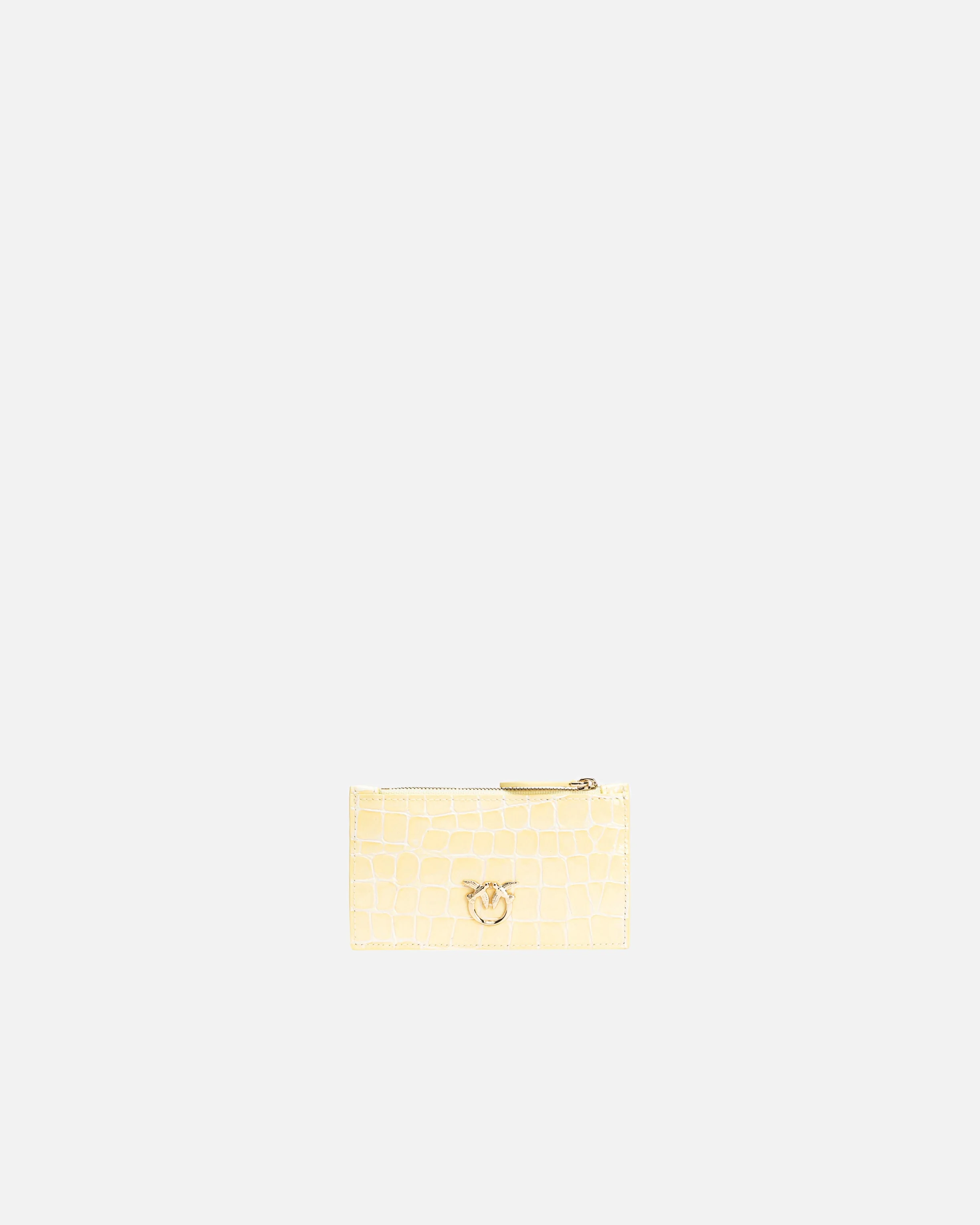 100251A1T8-S14L Card holder in shiny and slightly embossed crocodile-print leather. Customised with metal Love Birds Diamond Cut logo plaque. Contrasting-colour polycotton inner lining. Zip fastening. The accessory is part of the Limited Edition special capsule collection which comprises PINKO Galleria-exclusive limited-edition models. MEASURES W: 0.23 g H: 9.0 cm W: 0.5 cm L: 14.0 cm