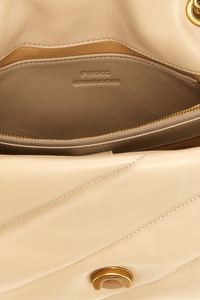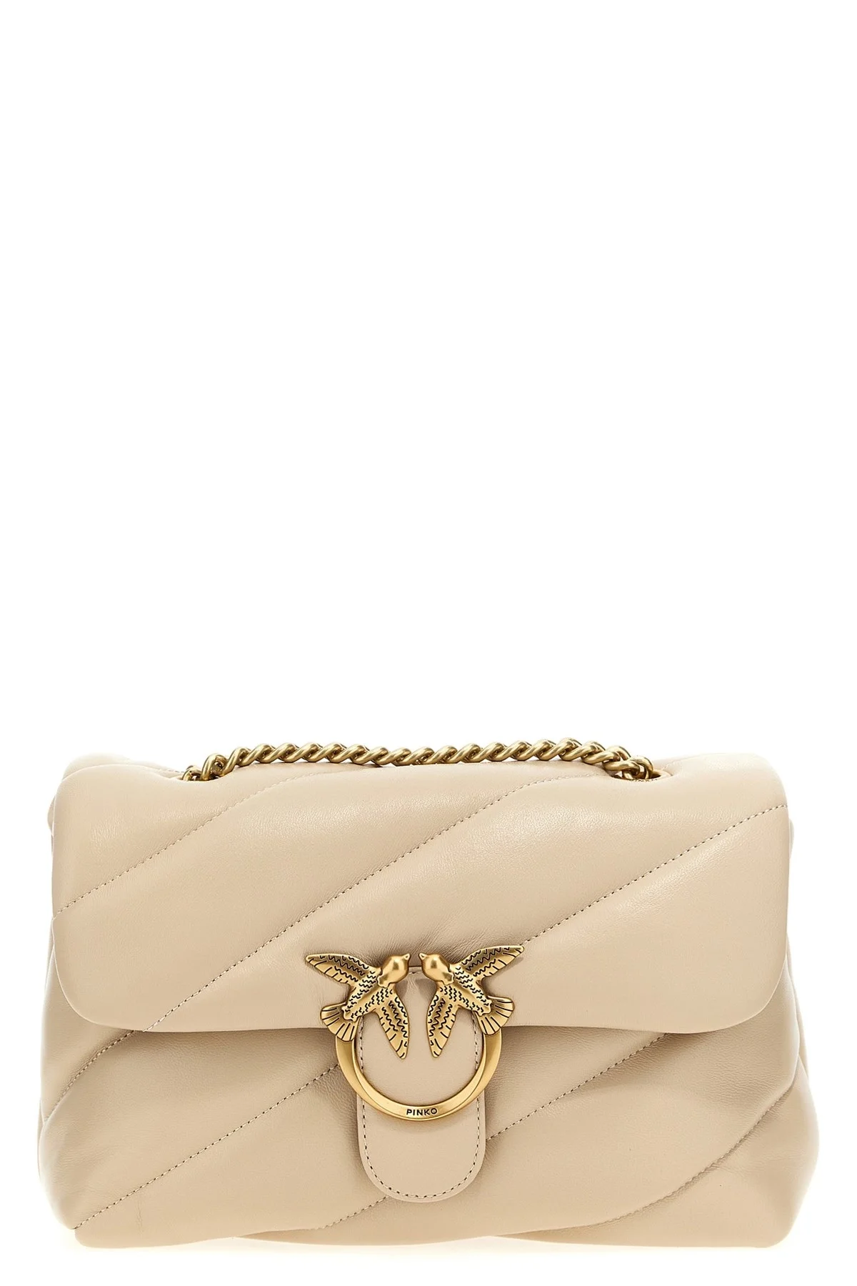 cod. 100038A0F2C50Q 'Classic Love Puff' crossbody bag in nappa leather with large diagonal quilting, magnetic flap closure with iconic Love Birds Diamond Cut metal buckle, suede microfiber lining, sliding chain shoulder strap with nappa leather shoulder pad. Color: Beige Size & Fit: W 27 x H 18 x D 10.5 cm Composition: 100% lamb leather (Ovis aries) Made in: China