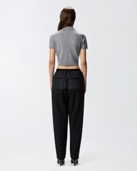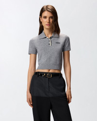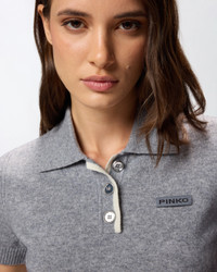 GORGONA POLO ā 105450A2Q9II2 Short slim-fit polo-style sweater in soft merino wool and cashmere-blend yarn. The style is completed by the ribbed sleeve trims and hem, and the tone-on-tone label with the PINKO lettering logo on the left side of the chest. The contrasting yarn elegantly highlights the three-button placket. The piece has undergone finishing tests to minimise the possible formation of pilling, ensuring greater fabric softness and durability. The quality fabric and versatile design will create endless looks. COMPOSITION Outer Yarn: WOOL 90% CASHMERE 10%