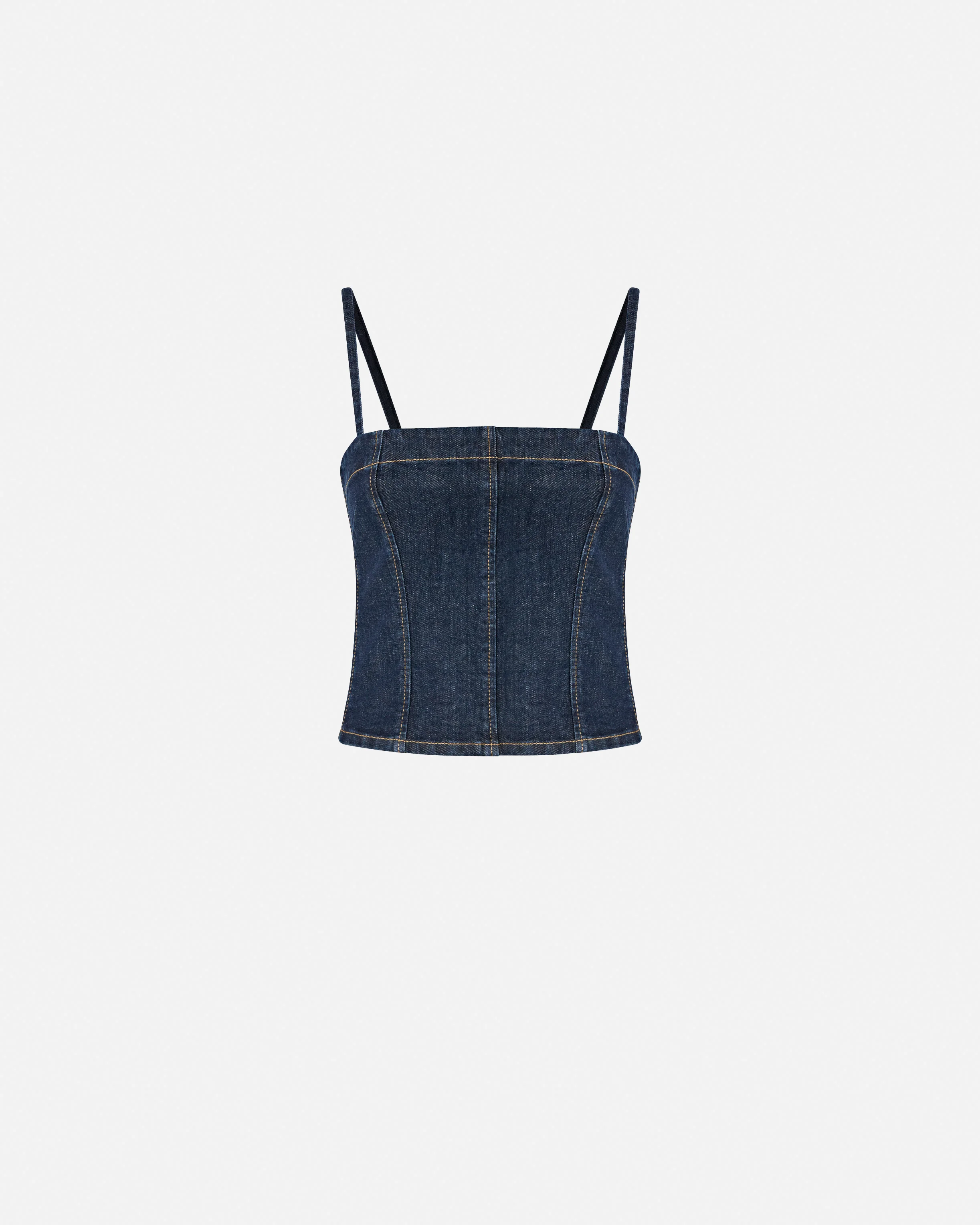 BARONE BUSTIER ā 105722A2UPPJL Bustier top with slim, adjustable straps, a straight neckline and contrasting top-stitching reminiscent of the boning on women's corsets. This piece is made from cotton comfort denim with a delicate blue rinse wash. Zip fastening on the back. Try the total look with the high-waisted trousers with the matching bustier for a bold, feminine outfit. COMPOSITION Outside Fabric: COTTON 99% ELASTANE 1% - Lining: POLYESTER 65% COTTON 35%