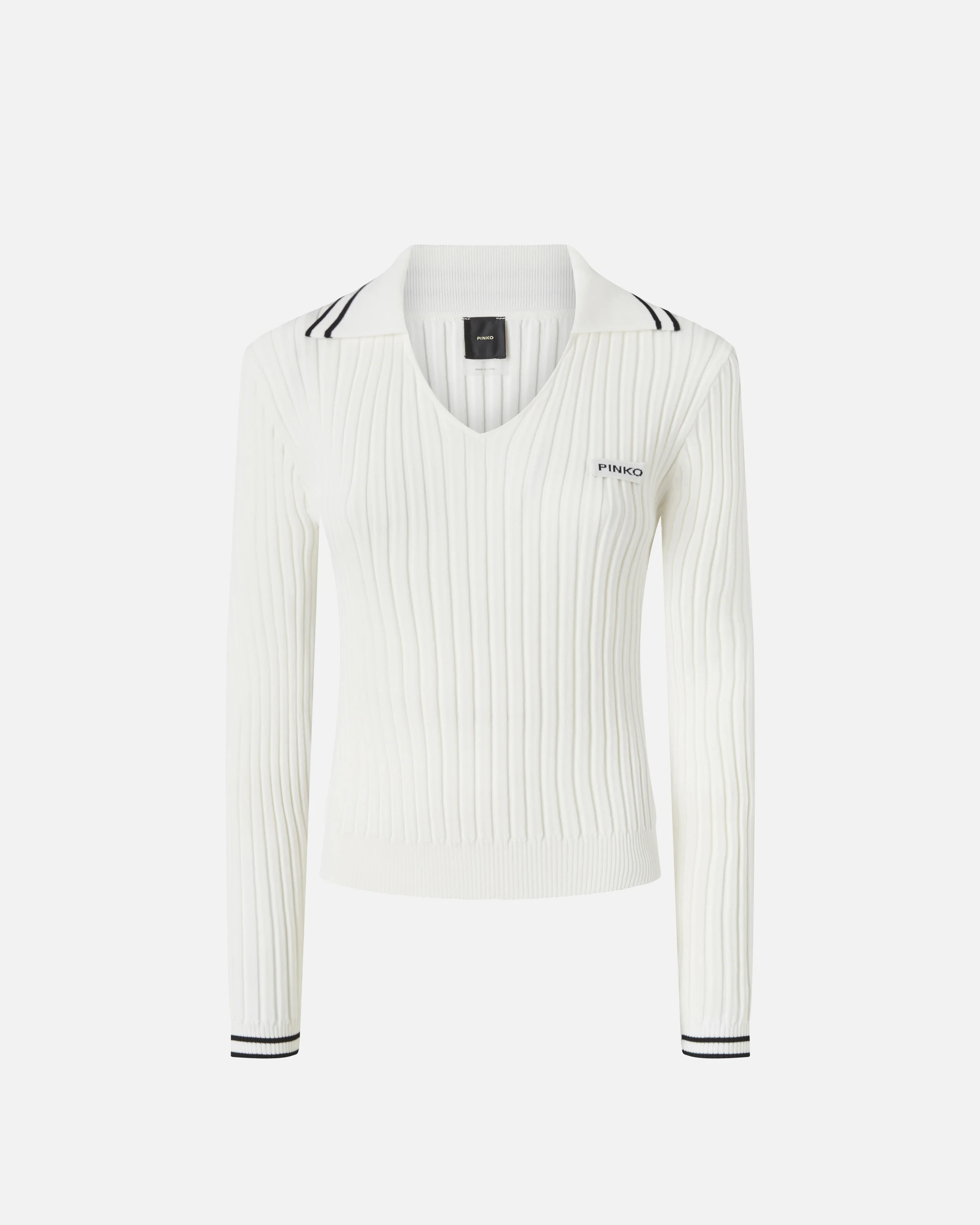 LINOSA POLO ā 105418A2PSZ10 Lightweight, stretchy rib-knit viscose sweater. The polo-style collar and double contrasting stripes make the piece suitable for completing endless preppy looks. The piece has undergone finishing tests to minimise the possible formation of pilling, ensuring greater fabric softness and durability. The style is completed by a tone-on-tone label with the PINKO lettering logo on the left side of the chest. COMPOSITION Outer Yarn: POLYAMIDE 51% POLYAMMIDE 51% VISCOSE 49%