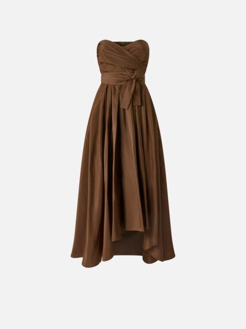 PARROT DRESS − 104937Y3LEN34 Sleeveless midi dress in taffeta, a fabric that lends itself very well to constructing geometric shapes and special effects. This elegant dress features a strapless bodice with sweetheart neckline and voluminous, delicately pleated skirt that's slightly shorter at the front to showcase the refined shoes you choose to pair it with. Notable details of this dress include a high tie-sash belt around the bodice to bring out the wearer's figure and add a special touch, and in-seam side pockets. Thanks to its distinctive design and the fabric it's made from, this dress will take centre stage at seasonal ceremonies. COMPOSITION Outside Fabric: POLYESTER 100% - Lining: POLYESTER 90% ELASTANE 10%