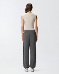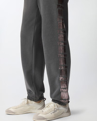 PLUMCAKE TROUSERS ā 104790A2V7I63 Cotton fleece joggers with a slightly distressed look, featuring branded bands on the outer legs obtained through a laminated print with a bold scratched effect. Slim-fit waist with stretch waistband. Pair these loose trousers with the sweatshirt in the same fabric for a comfy and original head-to-toe look during your free time. COMPOSITION Outside Fabric: COTTON 100% - Lining: COTTON 100%