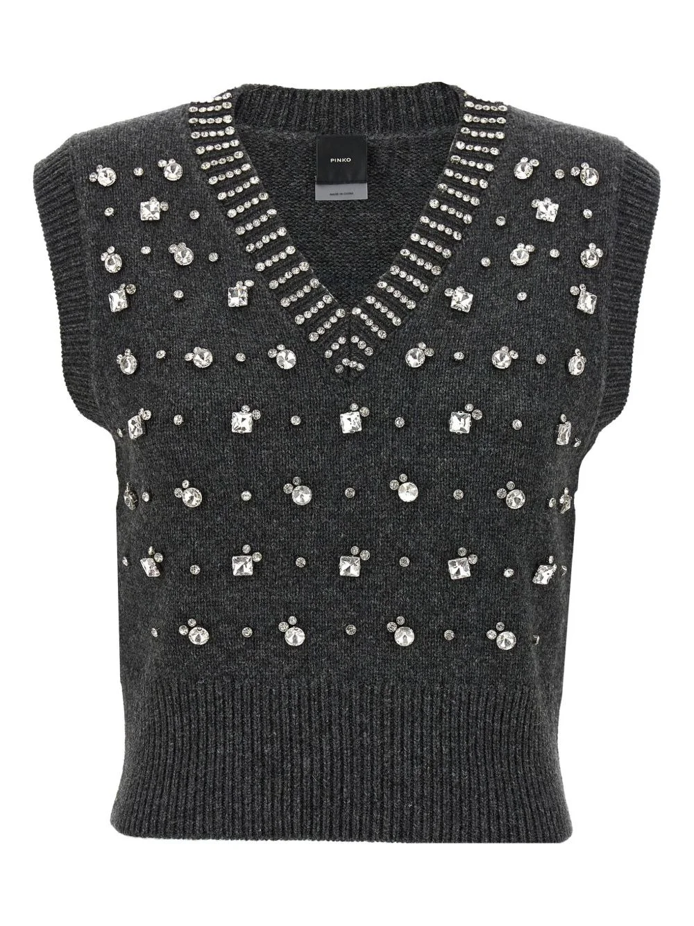 Ponziane crystal-embellished V-neck vest Highlights Imported Composition Wool 80%, Polyamide 20%
