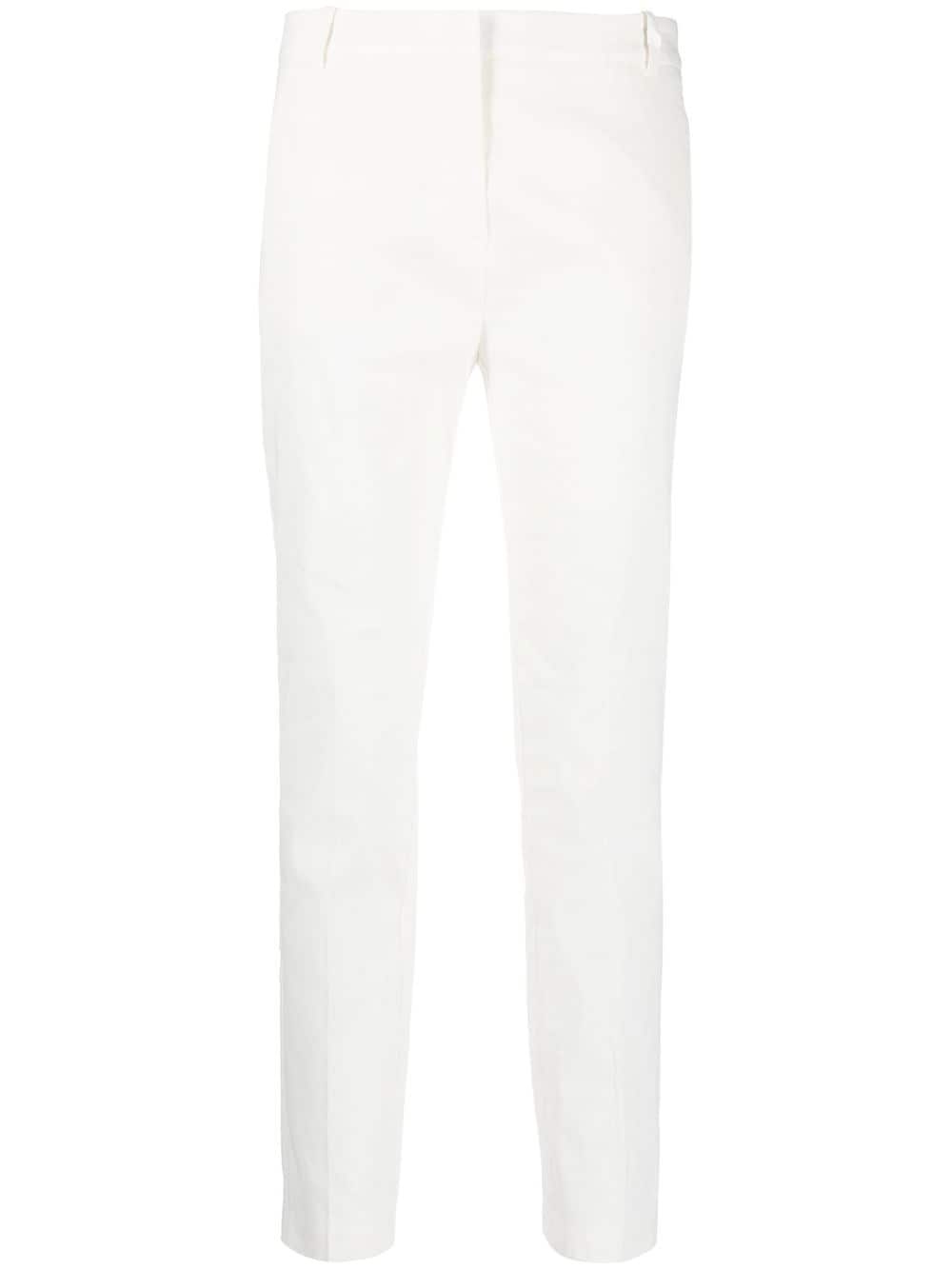 tailored linen trousers tailored linen trousers from PINKO featuring white, linen/flax, stretch-design, front clasp fastening, belt loops, two diagonal pockets to the sides, two rear welt pockets, high waist, tailored cut and ankle-length. Conscious: This item contains at least 50% low-impact materials, which are certified or widely recognised as having a lower environmental impact.. Made in Italy Composition Outer: Linen/Flax 59%, Viscose 38%, Spandex/Elastane 3% Lining: Cotton 100% SIZE & FIT Model measurements Height 5 ft 10 in(1.77 m) Bust/Chest 33.46 in(85 cm) Hips 35.03 in(89 cm) Waist 23.62 in(60 cm) FittingInformation This piece fits true to size. We recommend you get your regular size Cut for a slim fit Made with a mid-weight stretch fabric