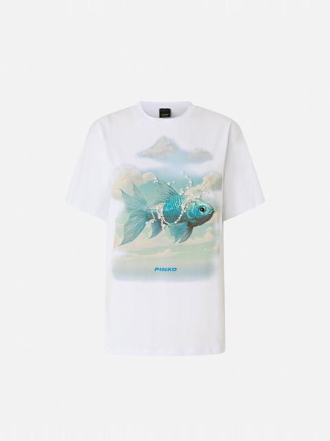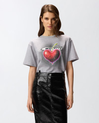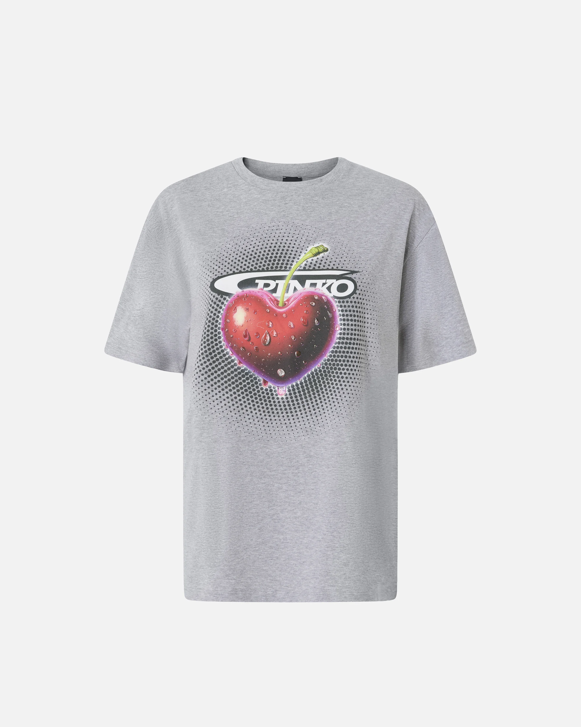 TUORLO T-SHIRT − 105703A2UFI42 Regular-fit short-sleeved T-shirt with a rib-knit crew-neck made from soft melange stretch jersey. The style features a cherry print that stands out on the front, accompanied by the PINKO lettering logo. This garment is easy to pair with jeans for a casual look. COMPOSITION 1° Outside Fabric: COTTON 100% - 2° Outside Fabric: COTTON 100%