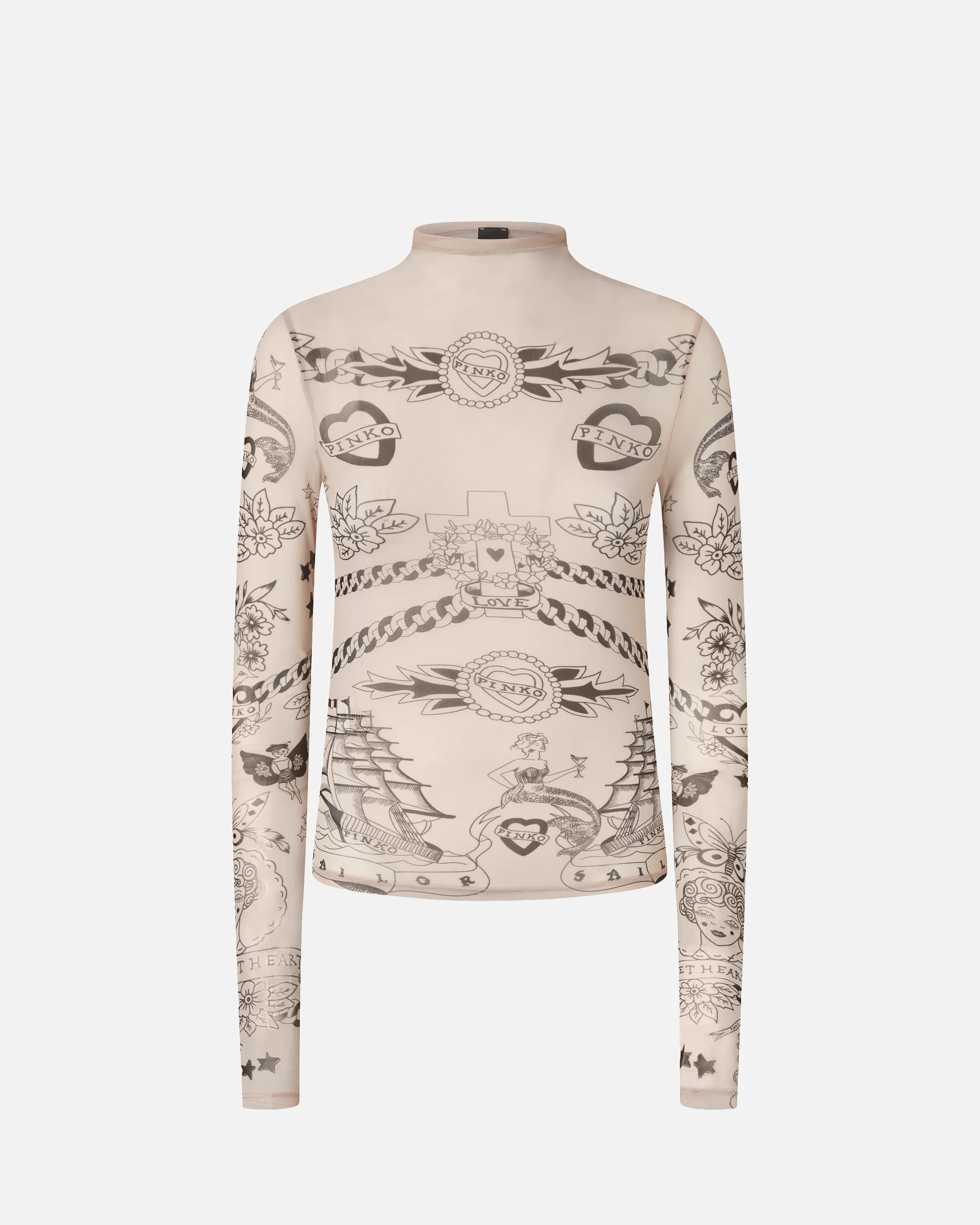 MOSTARDA KNITWEAR − 105798A2VMNZ8 This tulle sweater features a slim-fit line with long sleeves and a mock polo-neck. The run-resistant mesh is a very durable fabric that has undergone special treatment to prevent the stitching from unravelling when torn. The placed print that adorns the piece, on the other hand, is inspired by the sailing world and attests to PINKO's skill with different fabrics and complex manufacturing techniques. Make any outfit extra elegant and feminine with this top, which is perfect to wear under a jacket, paired with either tailored trousers or even a pair of special jeans. COMPOSITION Outside Fabric: POLYAMIDE 80% POLYAMMIDE 80% ELASTANE 20%
