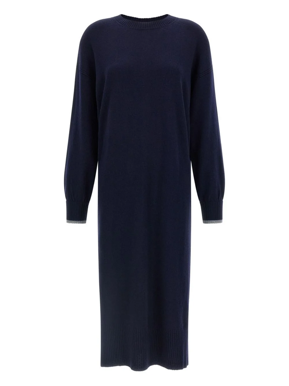 crew-neck contrast-trim maxi dress Highlights - Navy blue - Contrasting trim - Back logo - Side slits - Long sleeves Imported Composition Wool 90%, Cashmere 10% Washing instructions Read Manufacturer Guidelines