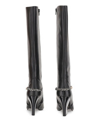 90mm chain-embellished leather boots Highlights - Black - Leather upper - Chain embellishment - Block heel - Pointed toe - Knee-high shaft Imported Composition Outer: Nylon 100% Sole: Polyurethane 100% Lining: Nylon 100% SIZE & FIT Measurement HEEL 3.54 in(9 cm)