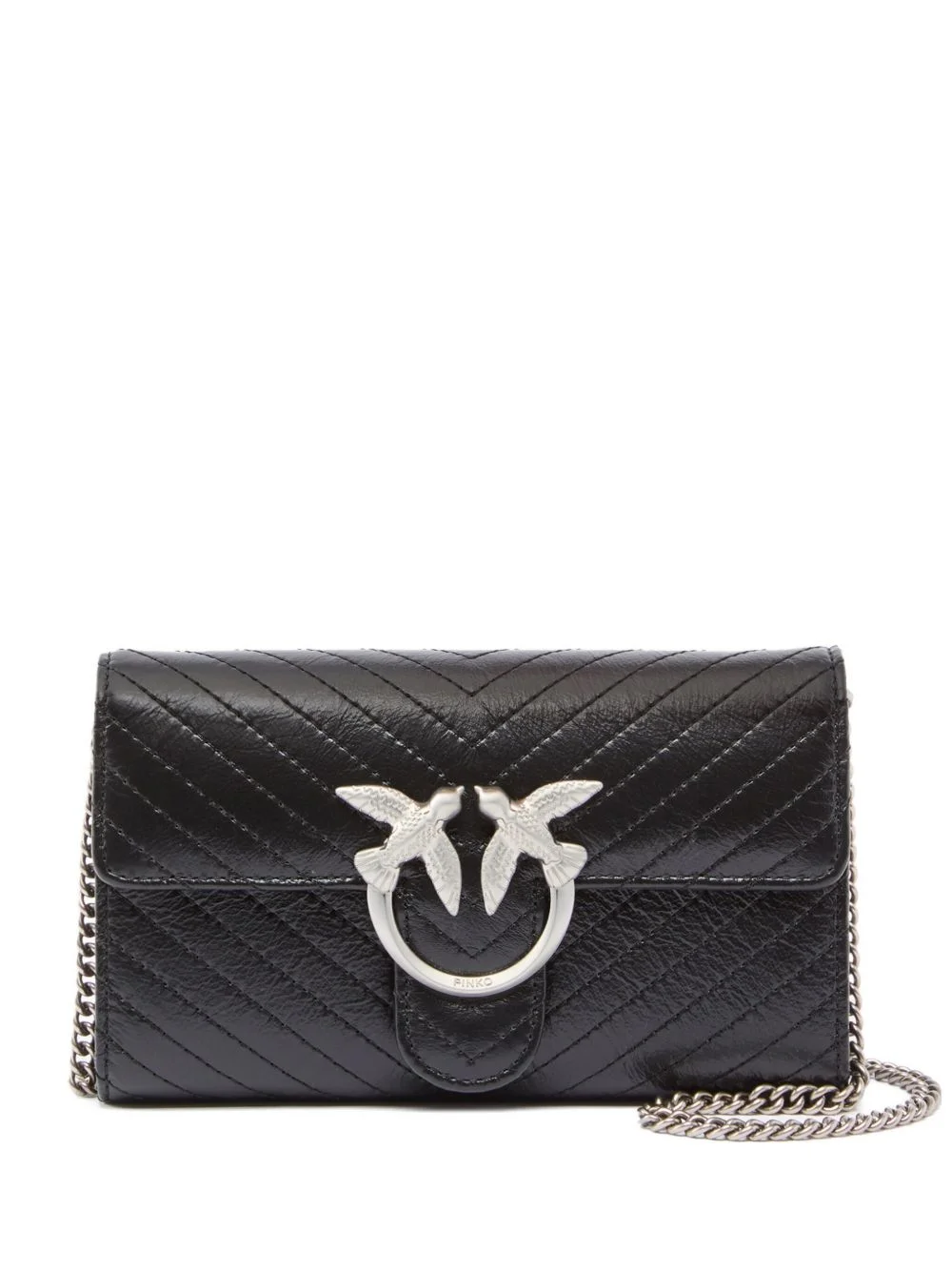 quilted chevron cross body bag Highlights - Black - Chevron quilting - Chain strap - Leather - Flap closure - Signature love birds buckle Imported Composition Bovine Leather 100% SIZE & FIT Measurement DEPTH 3.14 in(8 cm) HEIGHT 7.08 in(18 cm) WIDTH 9.84 in(25 cm)