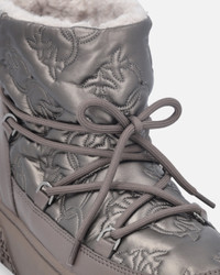 SS0101T036-L15 Winter boots with 12 cm-high leg shaft, tone-on-tone laces and leather-effect coated fabric. The quilted Love Birds logo motif all over is eye-catching and enhances the design, while the loop customised with the PINKO logo lettering makes it a functional shoe. The 4.5 cm-high chunky sole features the Love Birds logo embossed on the rubber for an extra custom touch. The fur-effect Aspen fabric lining inside provides the right amount of comfort and warmth. Pamper your feet with these shoes, ideal for giving casual looks an original finishing touch. COMPOSITION Lining: POLYESTER 100% - Upper: POLYESTER 73% CALF LEATHER 15% CALFSKIN LEATHER 15% POLYURETHANE 12% - Sole: POLYESTER 100% - Sole: ELASTODIENE 80% RUBBER 80% ETHYLENE-VINYL ACETATE 20% MEASURES W: 1.2 g