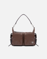 105110A2JC-L74E Medium leather Cargo Bag with a slightly gathered, wrinkled texture and chevron quilting and a cotton lining. Featuring an adjustable leather shoulder strap and a removable top handle, both of which are adjustable so you can choose how to carry it, the bag is extremely versatile and practical. A distinctive accessory that is perfect for endless looks, this accessory has two zip pockets on the exterior to keep your essentials safe. The refined design is complemented by the Love Birds logo, which embodies the inimitable style of the brand. Activate your PINKO bag: verify the authenticity of your product and access a personalised experience by scanning the Love Birds embroidery on the back of the bag with your smartphone! COMPOSITION Lining: COTTON 100% - Leather: COWHIDE 100% BOVINE SKIN 100% MEASURES W: 0.75 g H: 20.0 cm W: 14.0 cm L: 27.0 cm