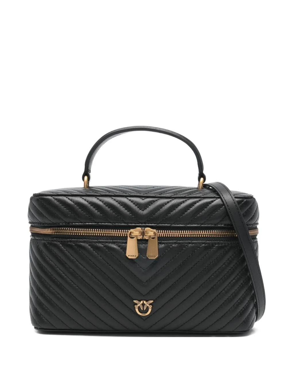 quilted tote bag Highlights - Black - Chevron quilting - Top handle - Zip fastening - Detachable shoulder strap - Logo applique Imported Composition Outer: Calf Leather 100%, Polyurethane 70%, Polyester 30% SIZE & FIT Model measurements Height 5 ft 10 in(1.77 m) Bust/Chest 32.28 in(82 cm) Hips 35.03 in(89 cm) Waist 25.19 in(64 cm) Measurement WIDTH 9.44 in(24 cm) HEIGHT 5.9 in(15 cm) DEPTH 3.54 in(9 cm)