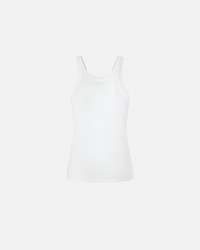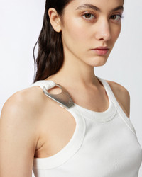 CLAY TANK − 105082A2JKZ04 Sleeveless vest top in ribbed, organic 100% cotton fabric sourced from a traceable and certified supply chain. One of the vest top's two straps is customised with a satin-finish metal geometric buckle with engraved logo. This ribbed vest top is a wardrobe staple, perfect for building everyday spring looks that are functional and feminine at the same time. This item is part of the special PINKO Reimagine capsule collection for Spring/Summer 2025, created in collaboration with designer Patrick McDowell, who has always paid close attention to the choice of materials used in his collections to minimise their overall environmental impact. COMPOSITION Outside Fabric: COTTON 98% ELASTANE 2%