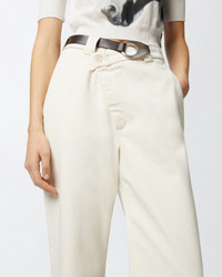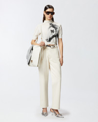 PAINT TROUSERS − 105071A2JPC21 Straight-leg trousers in pure cotton drill with buttoned crossover-style fastening and fixed half-belt—customised with a satin-finish geometric buckle with engraved logo—at the waist. Classic white trousers, but elevated: team them with your favourite garments for a daytime outfit with a special, individual touch. This item is part of the special PINKO Reimagine capsule collection for Spring/Summer 2025, created in collaboration with designer Patrick McDowell, who has always paid close attention to the choice of materials used in his collections to minimise their overall environmental impact. COMPOSITION Outside Fabric: COTTON 100% - Lining: POLYESTER 65% COTTON 35%