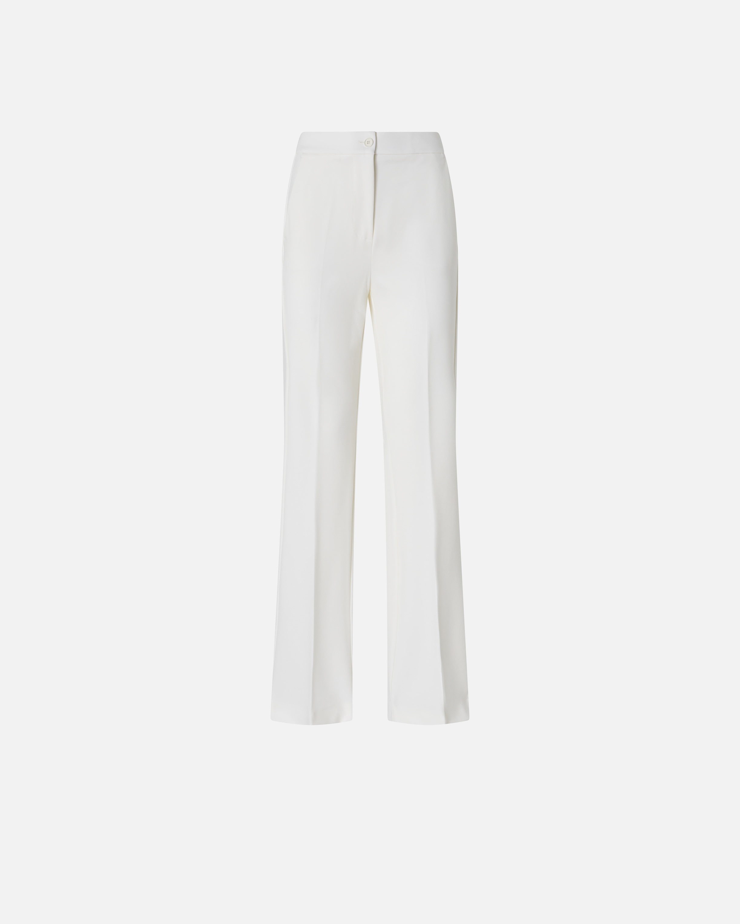STAY TROUSERS − 104926A0HMZ05 Women's long trousers in technical stretch viscose fabric worked in scuba effect fabric stitch, with a characteristic compact and slightly shiny texture. The high-waisted trousers, with a fitted line up to mid-leg and flared towards the bottom, are completed by pockets on the hips and a button and covered zip closure at the front. These are the perfect trousers to wear to the office with the matching blazer or wherever you want to wear a refined touch, together with a particularly feminine blouse or top. COMPOSITION Outside Fabric: VISCOSE 65% POLYAMMIDE 30% POLYAMIDE 30% ELASTANE 5% - Lining: ACETATE 67% POLYESTER 33%