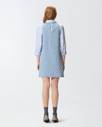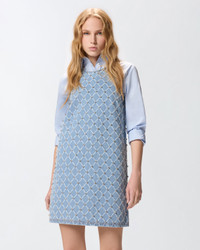 106245A32N-PJE Sleeveless mini dress with crew neck with rear opening and straight-cut shape reminiscent of dresses from the 1960s. This model showcases PINKO's unique flair for modern contrasting touches: the minimalist style of the design is accompanied by laser-cut denim adorned with a slightly contrasting diamond motif enhanced by sparkling hand-embroidered rhinestones. Wear this garment to a summer party and get ready to shine in the spotlight! COMPOSITION Outside Fabric: COTTON 100% - Lining: COTTON 100% - : Glass 100% - : STEEL 100% MEASURES W: 0.65 g