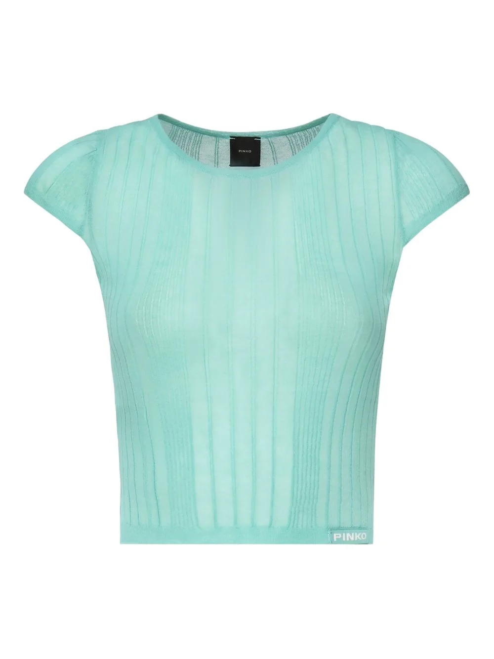 ribbed crew-neck knit top Highlights - Blue - Ribbed knit - Crew neck - Short sleeves Imported Composition Cotton 88%, Polyamide 12% Washing instructions Read Manufacturer Guidelines