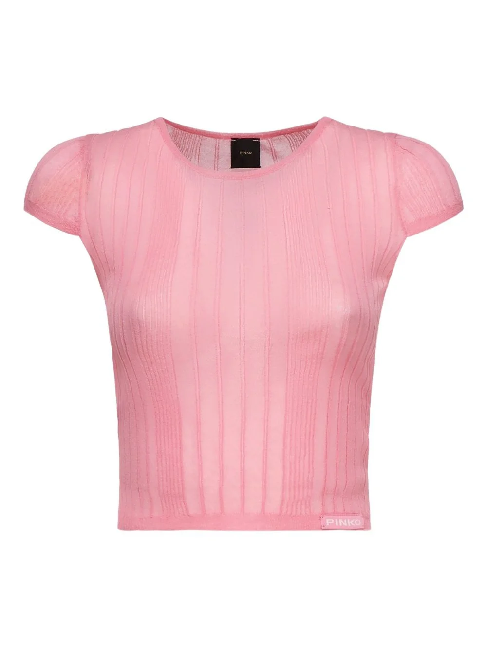 ribbed crew-neck top Highlights - Pink - Cotton-blend - Ribbed knit - Short sleeves - Crew neck Imported Composition Cotton 82%, Polyamide 18% Washing instructions Read Manufacturer Guidelines