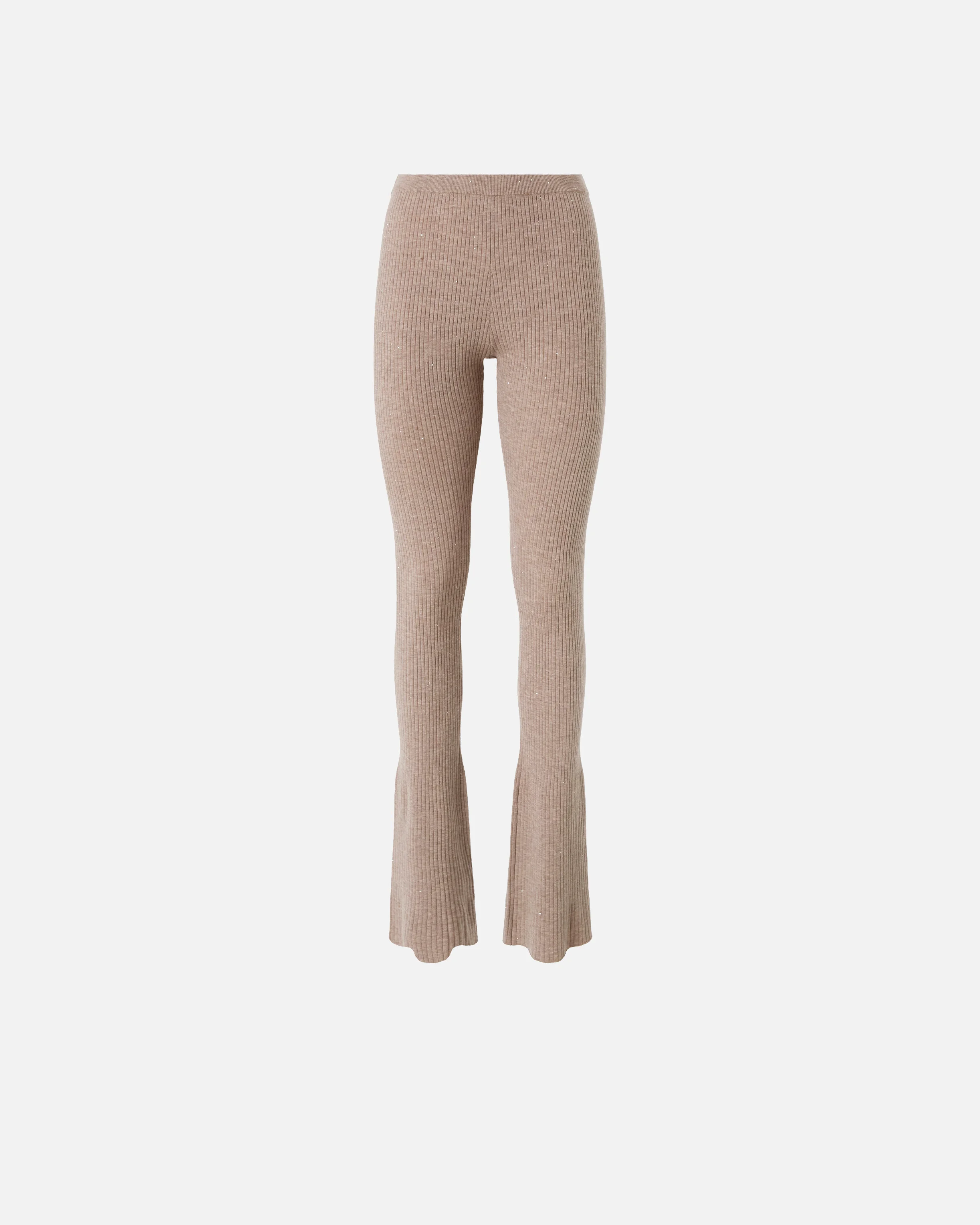 IBIZA TROUSERS ā 105880A2PMD23 Long soft knit trousers with a vertical rib knit and a high waist. This ultra-fine knit piece is given some shimmer by the delicate micro-sequins that cover the surface and is completed by the flared cut on the hem. The piece has undergone finishing tests to minimise the possible formation of pilling, ensuring greater fabric softness and durability. The perfect choice for a comfortable look that does not compromise on elegance. COMPOSITION Outer Yarn: WOOL 68% POLYAMMIDE 30% POLYAMIDE 30% POLYESTER 2%