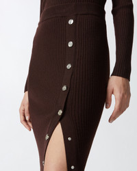 RIBBED CALF-LENGTH SKIRT WITH BUTTONS