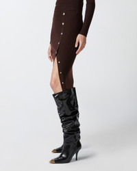 REFRIGERAZIONE SKIRT − 104021A15SM28 Straight-cut calf-length skirt in finely ribbed knit wool-blend fabric. The slim-fitting, knee-length skirt features metal buttons customised with the Love Birds logo, which you can use to create a bespoke side slit, depending on the number of buttons unfastened. COMPOSITION Outside Fabric: WOOL 75% POLYAMMIDE 25% POLYAMIDE 25%