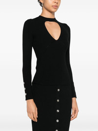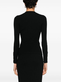 ribbed wool sweater Highlights - Black - Wool blend - Ribbed knit - Logo-embossed buttons - Cut-out detailing - Mock neck - Long sleeves - Press-stud fastening cuffs - Straight hem Imported Composition Wool 75%, Polyamide 25% SIZE & FIT Model measurements Height 5 ft 9 in(1.76 m) Bust/Chest 31.88 in(81 cm) Hips 35.43 in(90 cm) Waist 24.8 in(63 cm) FittingInformation Designed for a close fit throughout Made with a midweight knit, this piece offers some stretch This piece fits true to size – take your usual size Washing instructions Hand Wash