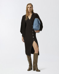 LIMPIDEZZA DRESS − 104033A239M04 Women's long dress in stretchy, ribbed knit viscose-blend fabric. This slim-fitting dress is given an exquisite, feminine edge by the crossover V-neck at the front, shirt collar and row of golden metal buttons at the front running parallel to the deep slit at the bottom. COMPOSITION Outside Fabric: POLYAMIDE 51% POLYAMMIDE 51% VISCOSE 49%