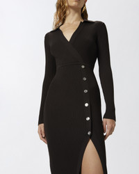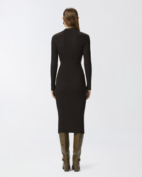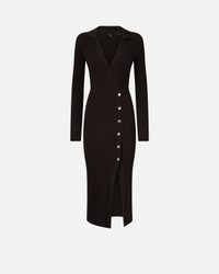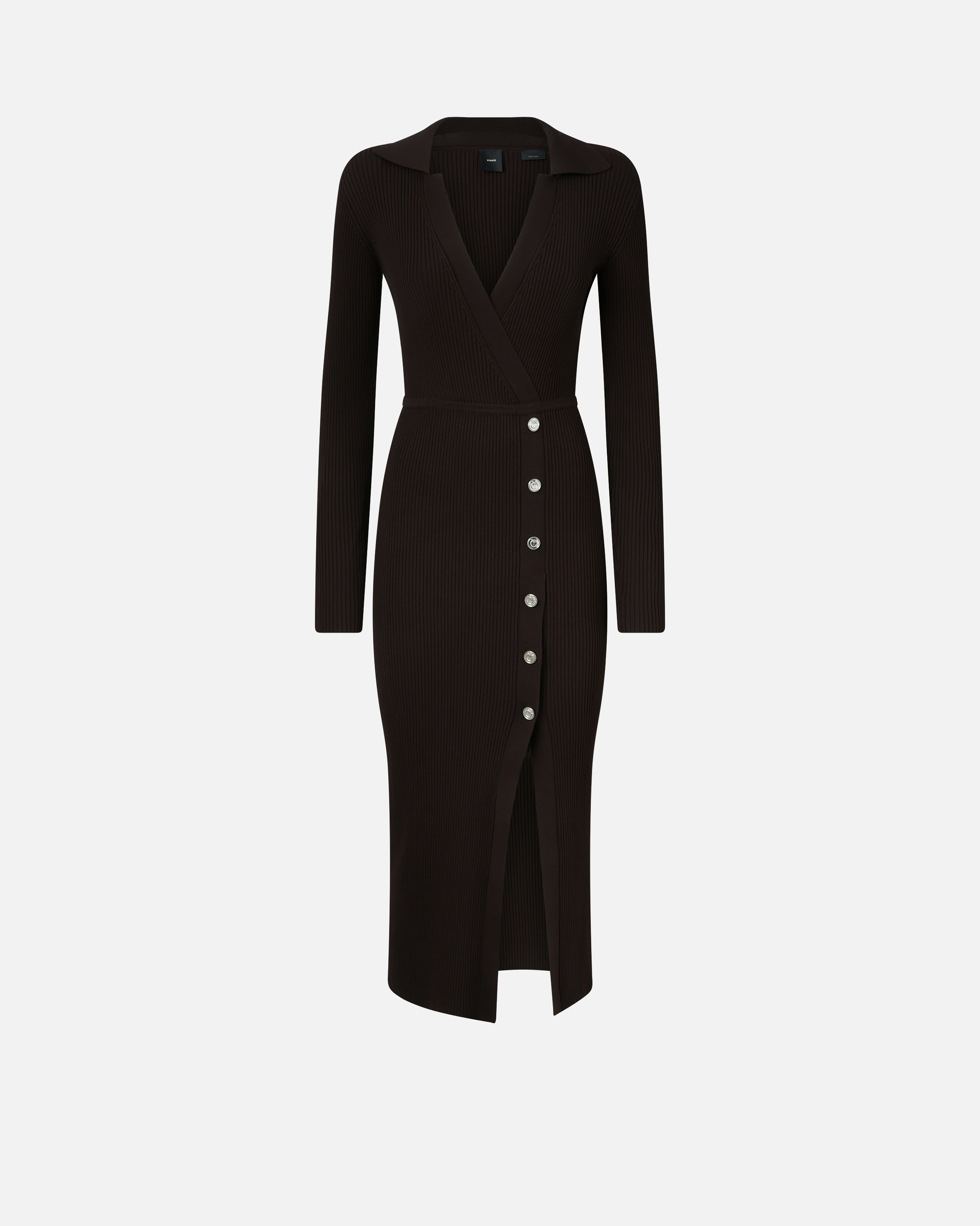LONG RIBBED KNIT DRESS WITH GOLDEN BUTTONS