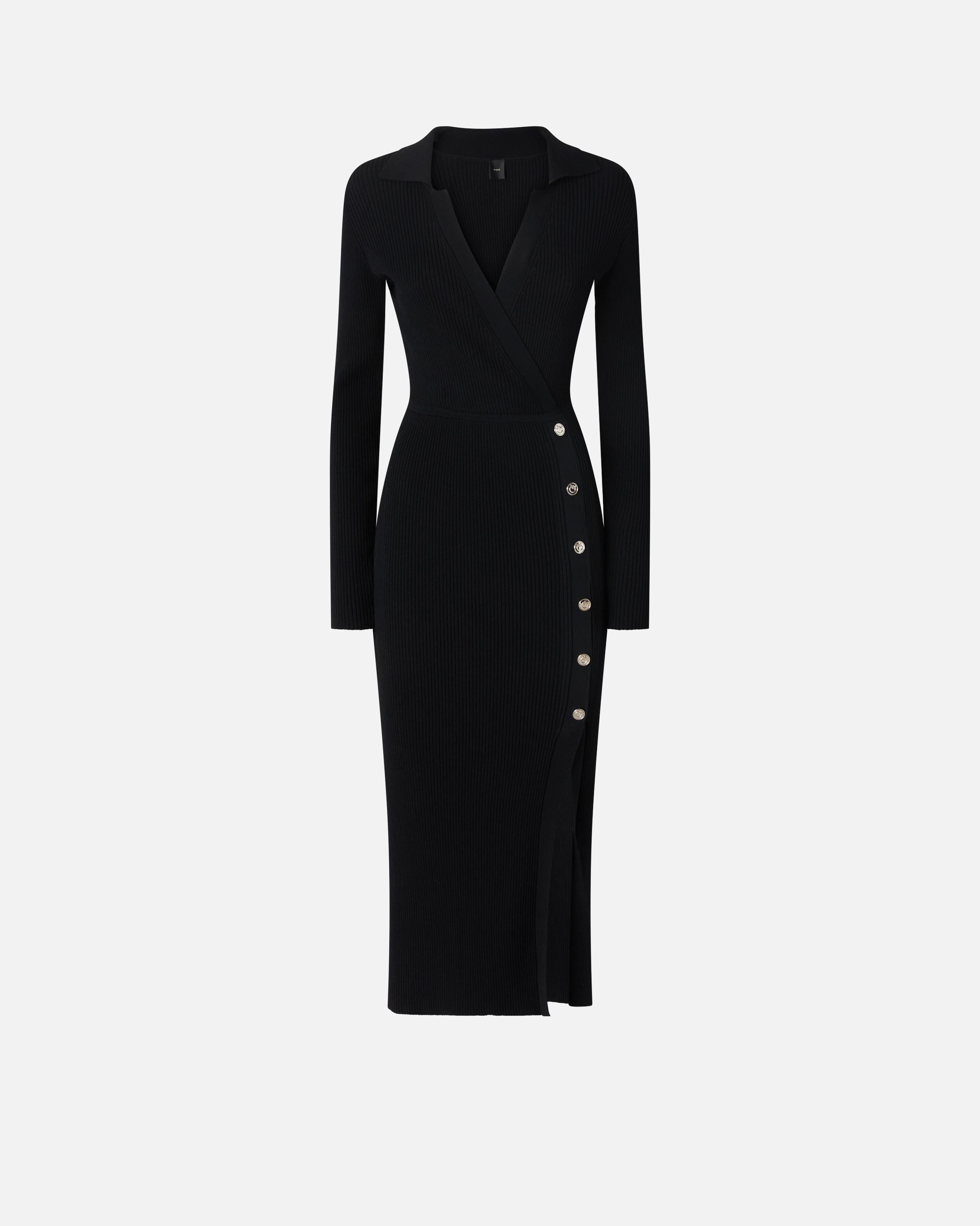 LIMPIDEZZA DRESS − 104033A239Z99 Women's long dress in stretchy, ribbed knit viscose-blend fabric. This slim-fitting dress is given an exquisite, feminine edge by the crossover V-neck at the front, shirt collar and row of golden metal buttons at the front running parallel to the deep slit at the bottom. COMPOSITION Outside Fabric: POLYAMIDE 51% POLYAMMIDE 51% VISCOSE 49%
