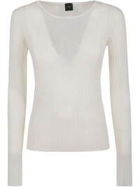 ribbed sweater Highlights - Off-white - Ribbed texture - Deep v-neckline - Long sleeves - Fitted silhouette - Contrasting underlayer detail Imported Composition Cotton 82%, Polyamide 18%