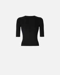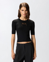 TRITONE SWEATER − 102017A18MZ99 Slim-fit half-sleeve sweater in ribbed merino wool with a particularly lightweight feel, featuring sheer Love Birds logo inlay on the front. The piece has undergone finishing tests to minimise the possible formation of pilling, ensuring greater fabric softness and durability. An authentic women's wardrobe staple that will instantly elevate your everyday outfits. COMPOSITION Outer Yarn: WOOL 77% POLYAMIDE 17% POLYAMMIDE 17% POLYESTER 6%