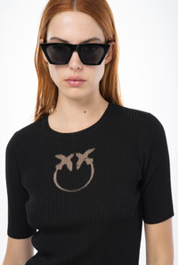 RIBBED SWEATER WITH TRANSPARENT LOVE BIRDS LOGO
