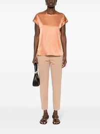 ribbed tailored trousers Highlights - Light brown - Stretch-design - Ribbed knit - Pressed crease - Dart detailing to the rear - Concealed front button, hook and zip fastening - Belt loops - Mid-rise - Tailored cut - Two side inset pockets - Two rear jetted pockets - Straight hem - Unlined Made in Italy Composition Outer: Viscose 65%, Polyamide 30%, Spandex/Elastane 5% Lining: Acetate 65%, Polyester 35% SIZE & FIT Model measurements Height 5 ft 10 in(1.77 m) Bust/Chest 32.28 in(82 cm) Hips 35.03 in(89 cm) Waist 25.19 in(64 cm) Washing instructions Dry Clean Only