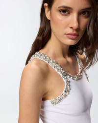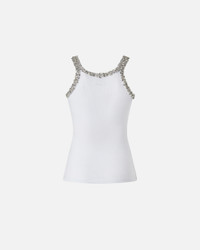 CORIANDOLI TANK TOP − 104109A2TMZ04 Vest top in ribbed cotton jersey. The front and back necklines and straps are covered with expertly embroidered crystals, rhinestones and glass details that add shimmer and exquisiteness to the garment. Make any outfit extra elegant and feminine with this top, which is perfect to wear under a jacket, paired with either tailored trousers or even a pair of special jeans. COMPOSITION Outside Fabric: COTTON 91% ELASTANE 9% - : Glass 100% - : STEEL 100% - : POLYVINYL CHLORIDE 100% POLYVINYL FIBRE 100%