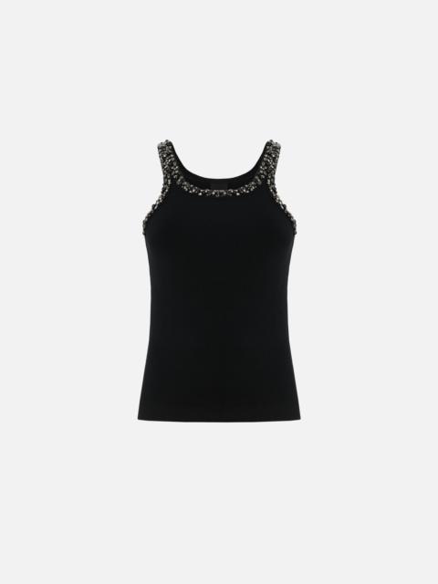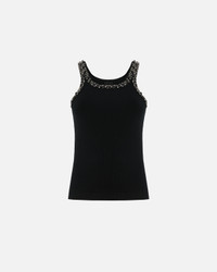 CORIANDOLI TANK TOP − 104109A2TMZ99 Vest top in ribbed cotton jersey. The front and back necklines and straps are covered with expertly embroidered crystals, rhinestones and glass details that add shimmer and exquisiteness to the garment. Make any outfit extra elegant and feminine with this top, which is perfect to wear under a jacket, paired with either tailored trousers or even a pair of special jeans. COMPOSITION Outside Fabric: COTTON 91% ELASTANE 9% - : Glass 100% - : STEEL 100% - : POLYVINYL CHLORIDE 100% POLYVINYL FIBRE 100%