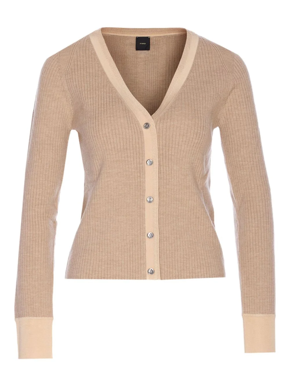 ribbed V-neck cardigan Highlights - Beige - Ribbed knit - V-neck - Frontal button closure - Long sleeves Imported Composition Viscose 100%, Wool 100% Washing instructions Read Manufacturer Guidelines
