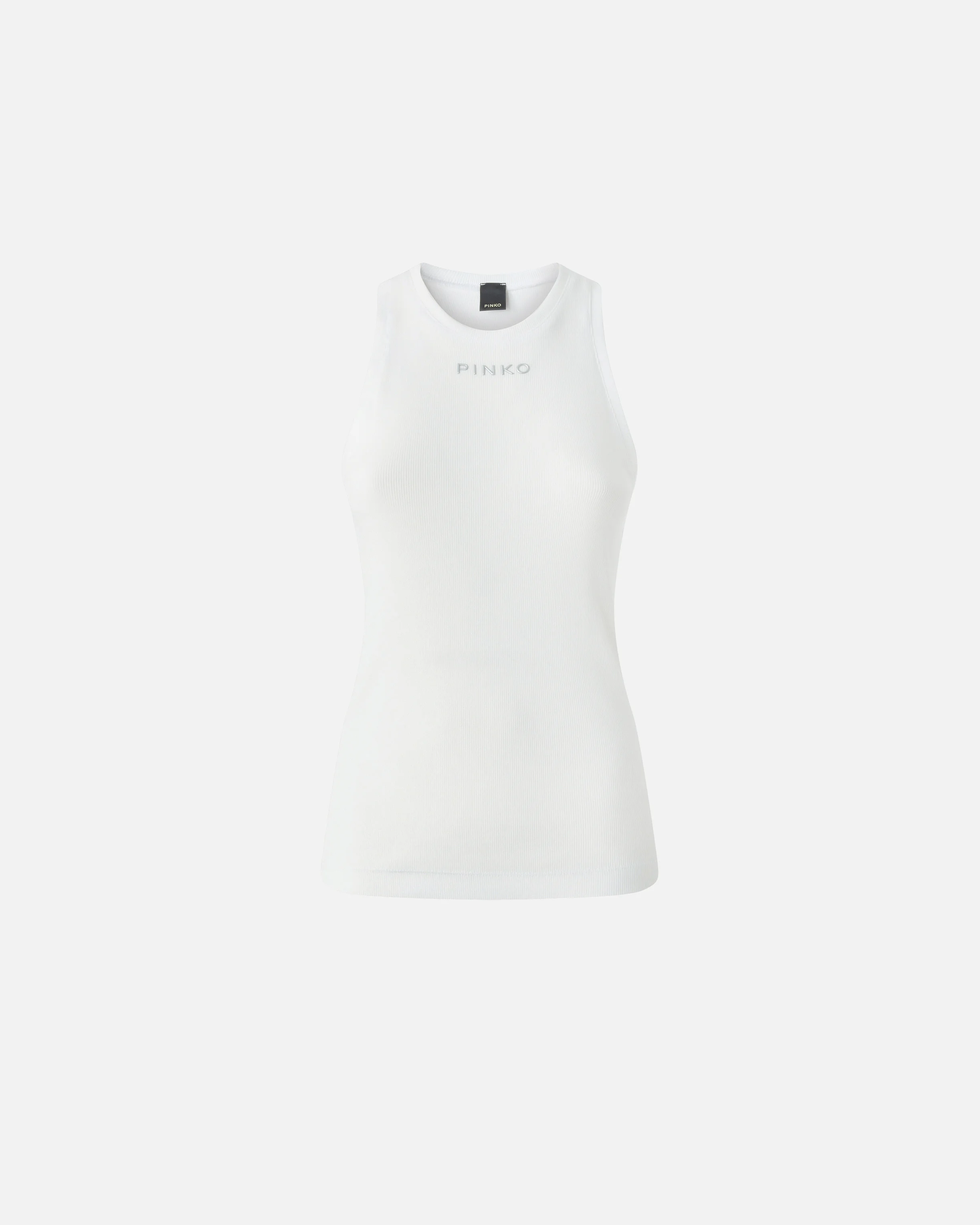 DISTINTO TANK TOP − 100822A2RCZ05 Sleeveless stretch cotton jersey vest top with a racer neck and embroidered PINKO lettering logo on the front. This ribbed vest top is a wardrobe staple, perfect for building everyday spring looks that are functional and feminine at the same time. COMPOSITION Outside Fabric: COTTON 97% ELASTANE 3%