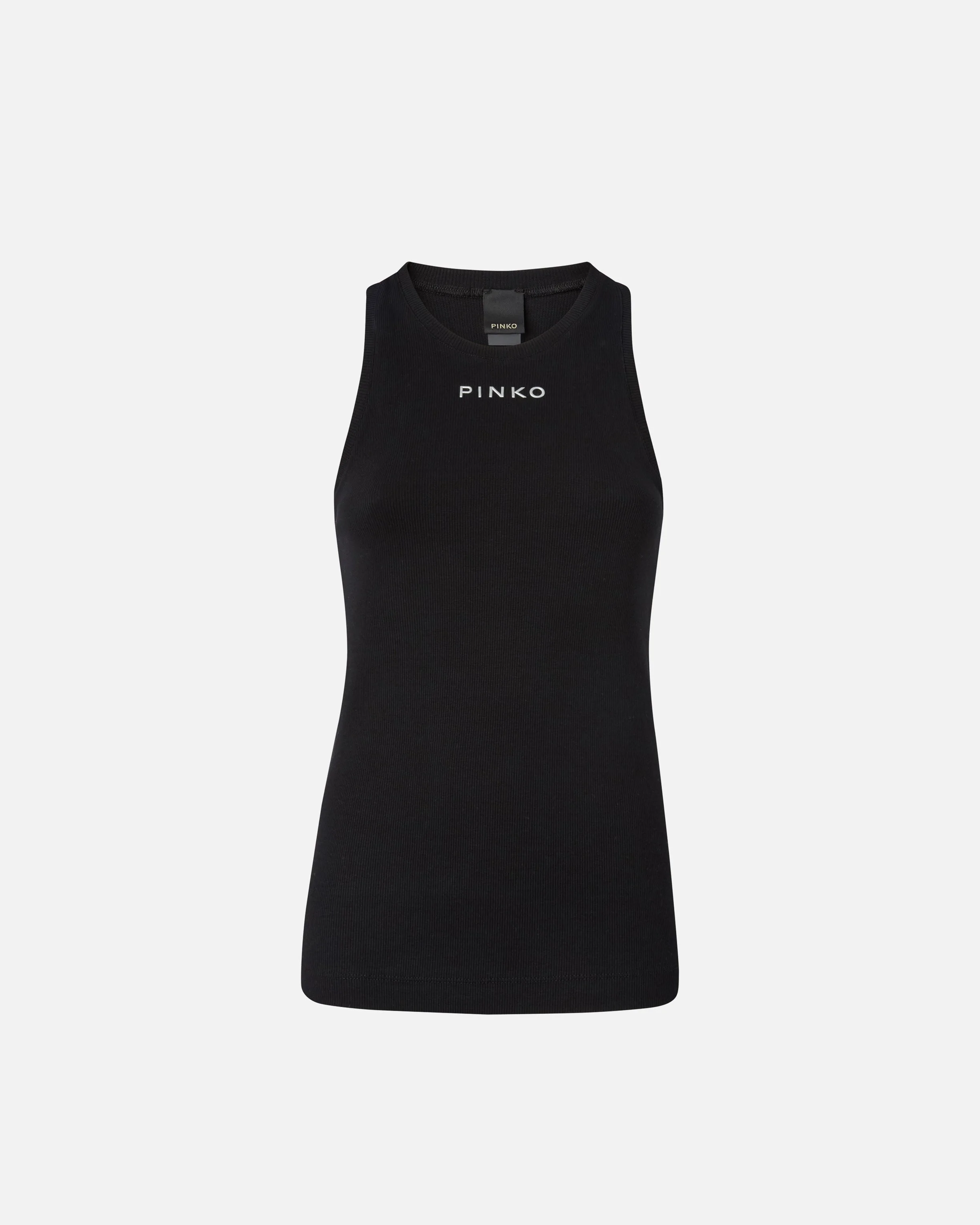 100822A2RC-Z99 Sleeveless stretch cotton jersey vest top with a racer neck and embroidered PINKO lettering logo on the front. This ribbed vest top is a wardrobe staple, perfect for building everyday spring looks that are functional and feminine at the same time. - DISTINTO TANK TOP COMPOSITION Outside Fabric: COTTON 97% ELASTANE 3% MEASURES W: 0.16 g