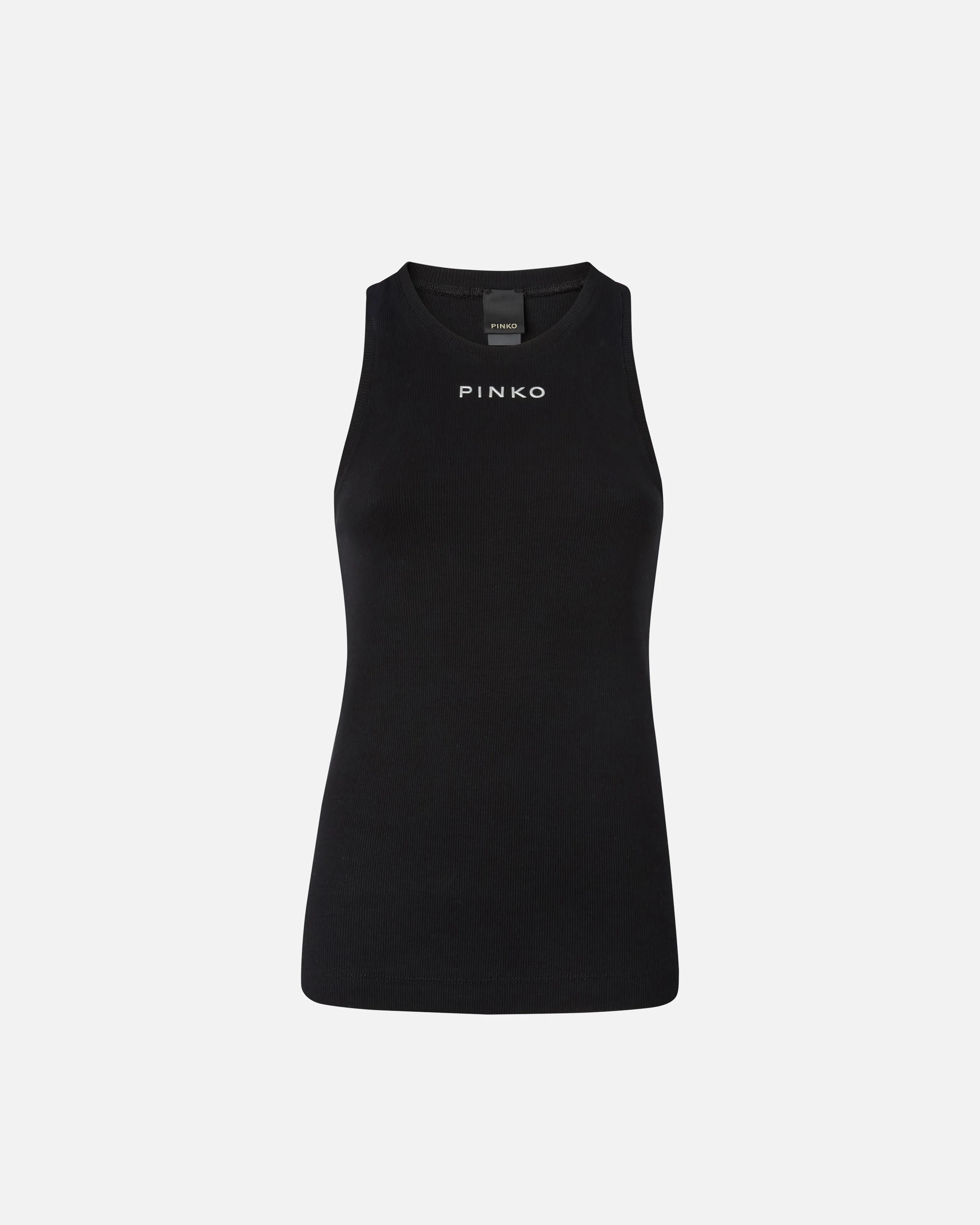 DISTINTO TANK TOP − 100822A2RCZ99 Sleeveless stretch cotton jersey vest top with a racer neck and embroidered PINKO lettering logo on the front. This ribbed vest top is a wardrobe staple, perfect for building everyday spring looks that are functional and feminine at the same time. COMPOSITION Outside Fabric: COTTON 97% ELASTANE 3%