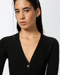 RISERVA DRESS − 104017A15SZ99 Mini dress in ribbed knit stretch wool fabric. Slim-fitting piece with V-neck, long sleeves and metal buttons customised with the Love Birds logo on the front. COMPOSITION Outside Fabric: WOOL 75% POLYAMMIDE 25% POLYAMIDE 25%