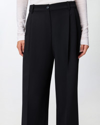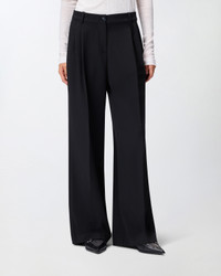 RISO TROUSERS − 105898A18EZ99 Women's trousers with a wide and fluid silhouette with an elegant palazzo leg that gives movement to every step. Featuring a figure-hugging high waist and a front button closure for a perfect fit. Made of soft fabric that falls naturally creating a sophisticated draped effect. Perfect to combine with fitted tops or tucked-in shirts to balance proportions and create elegant outfits for both day and evening. COMPOSITION Outside Fabric: POLYESTER 72% VISCOSE 23% ELASTANE 5% - Lining: ACETATE 67% POLYESTER 33%
